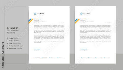 Stationary template. Letterhead format template, business style letterhead design template. Company letterhead template design.
