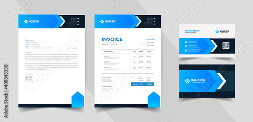 Stationery Template Design. Letterhead, Business Card, and Invoice design. Brand Identity Vector Template.