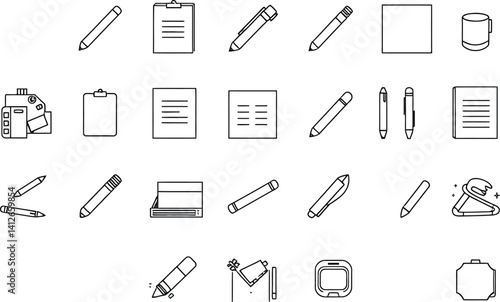 Stationery vector icon set illustration with office tools like pen, pencil, clip, and metal objects for business design