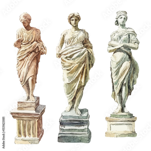 Statues And Sculptures, watercolor drawing vector, isolated on a white background.