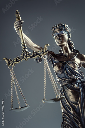 Statute of Justice. Bronze statue Lady Justice holding scales and sword