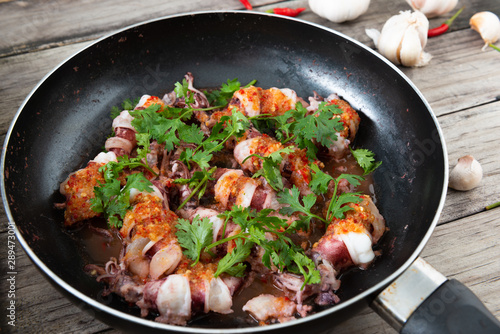 Steam Squid with Spicy Chili and Lemon Sauce.