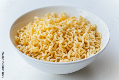 Steaming bowl of ramen with scallions on white background. AI generated.