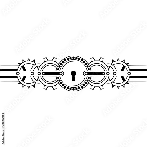 Steampunk Gear Keyhole Design, Mechanical Lock Illustration, Vector
