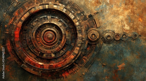 Steampunk-inspired rusted gearwork design with textured and detailed surface