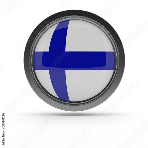 Steel badge with the flag of Finland on a white background, 3d rendering