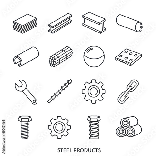 steel products thin line icon set symbol collection in transparent background editable vector stroke 512x512 pixel perfect