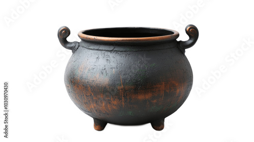 Steel witch cauldron Halloween decorative object isolated on transparent background