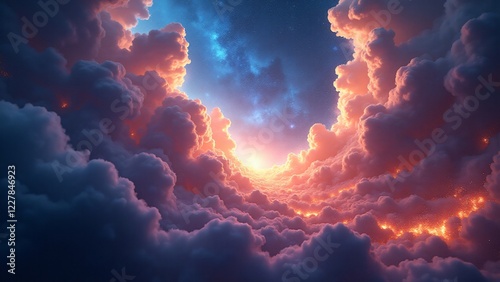 Stellar clouds glowing with electric sparks in vibrant colors, creating a dynamic and energetic cosmic scene.