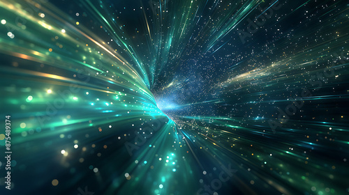 Stellar Whirl: Abstract Hyperspace Light Effect in Blue and Green