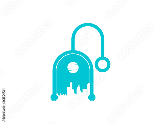 Stethoscope with city building in the middle