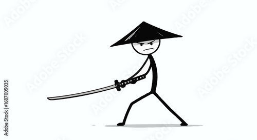 Stick Figure Samurai with Katana A Ready-to-Fight Illustration for Your Projects