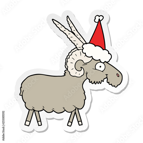 sticker cartoon of a goat wearing santa hat