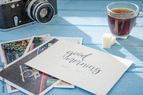 still life of cake with cup of coffee highlighted by sunlight