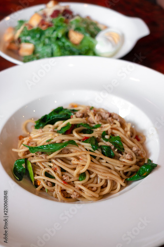 Stir-Fried Minced Pork and Thai Basil Spaghetti