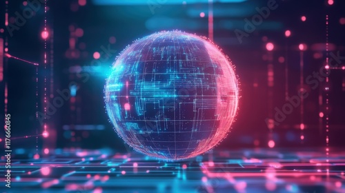 Stock banner technology based on data science and innovation is used in Internet cyberspace by a round ball with AI text.