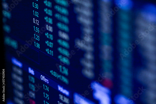 Stock exchange market chart, Stock market data on LED display. Business analysis concept.