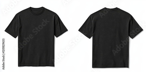 Stock image of a men's black t-shirt mockup template, featuring the front and back views, isolated with a transparent background.