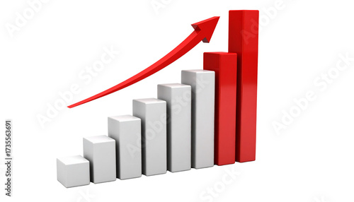 Stock market business graph chart with an upward red arrow signifying financial success and growth on a white background illustration