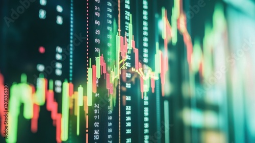 Stock Market Chart with Green and Red Candlesticks on Screen