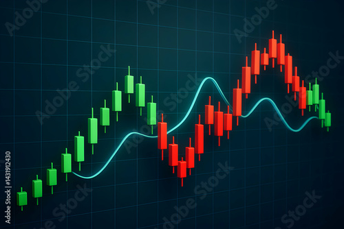 Stock market data graphic with candlestick trends.