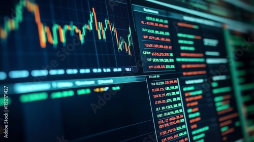 Stock market data on digital screen, showcasing financial trends and market analysis.