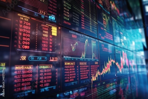 Stock market financial statistics on screen, share pricing, online trading data made with Generative AI technology