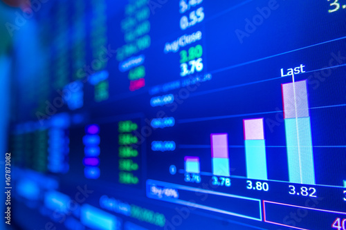 Stock market graph and ticker with blue screen for stock exchange analysis