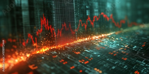 stock market graph illustrating financial statistics, declining prices, and inflation rate, depicting an abstract representation of the stock market crash and ongoing financial crisis