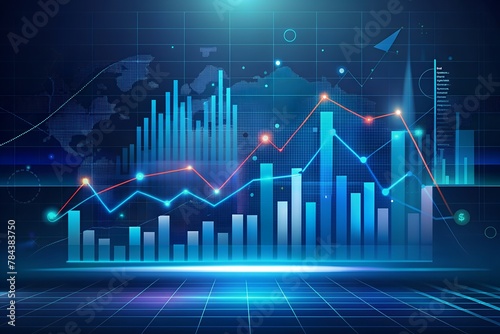 Stock Market Growth and Data Concept with Digital Charts on Dark Blue Background.