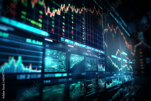 stock market indices against the backdrop of the city. generative ai. growth and decline in the stock market. economic crisis.