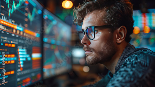 Stock market monitor analyzing trading data. Forex exchange technology concept,generative ai