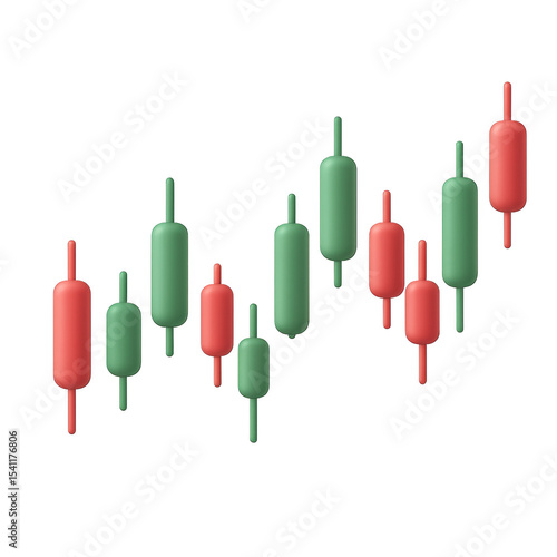Stock market trend: A digital depiction of stock market activity, where a series of green and red candlesticks illustrate the fluctuating highs and lows.