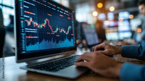 Stock traders pointing highest stock market on dynamic valued analysis on monitor real time screen, cooperating business investment in financial company to plan successful stock exchange. Sellable.