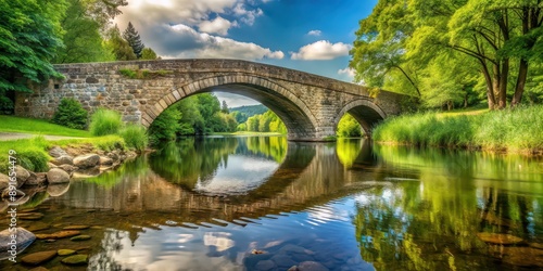 Stone bridge over tranquil river, bridge, stone, architecture, structure, landmark, scenic, nature, water, reflection
