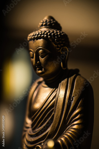 Stone carved statue of buddha. Buddhist portrait in stone. Golden Buddha in meditation. Generative AI