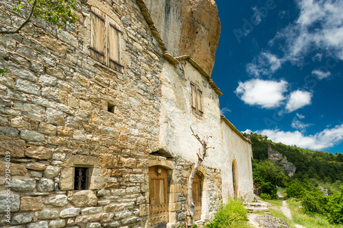 Stone houses of the troglodyte village of Saint Marcellin in the Gorges du Tarn