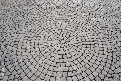 Stone road texture. Stone walk background. Granite cobblestoned pavement background. Rough brick road. Side walk. Stone cladding pavement.