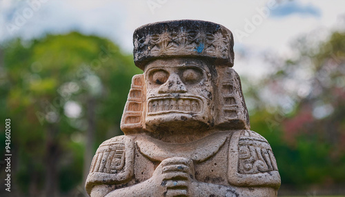 Stone statue of h Mayan or Aztec god. Mythology concept. Ancient sculpture.