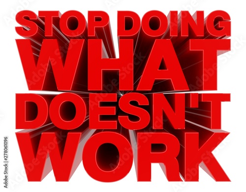STOP DOING WHAT DOESN'T WORK word on white background 3d rendering