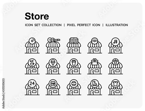 Store Icons Set. UI Pixel Perfect Well-crafted Vector Thin Line Icons. The illustrations are a vector.