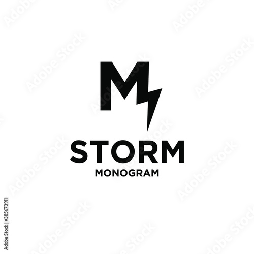 storm with initial letter m and modification as thunderbolt vector logo icon illustration design isolated white background