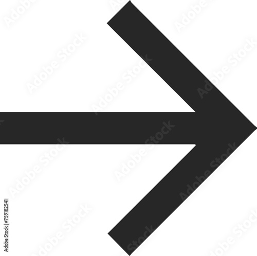 Straight pointed arrow icon. Black arrow pointing to the right. Black direction pointer, website design arrow graphics, vector isolated eps editable circular triangular shape going east