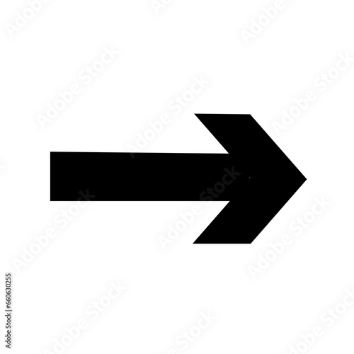 Straight pointed arrow icon. Black vector arrow pointing to the right. Black direction pointer. Sharp thick arrow
