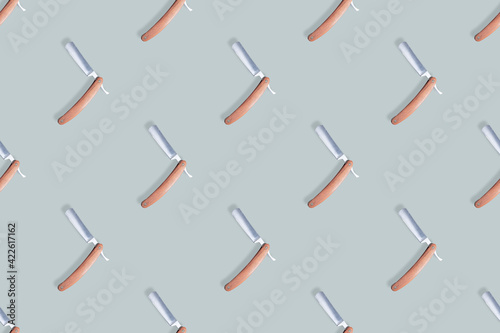 Straight razor seamless pattern. Background on the theme of a hairdressing salon.