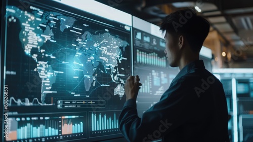 Strategic Analysis of Global Supply Chain Data on Interactive Touchscreen by Business Analyst