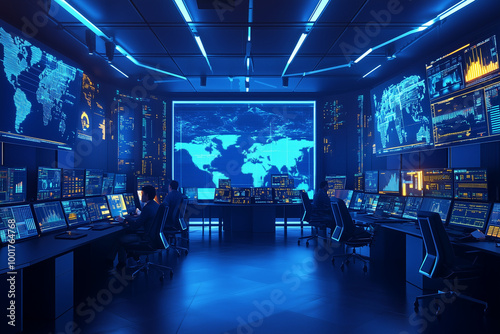 Strategic Command Center: Trader War Room with Command Center Setup, Traders Monitoring Global Markets for Decisive Actions