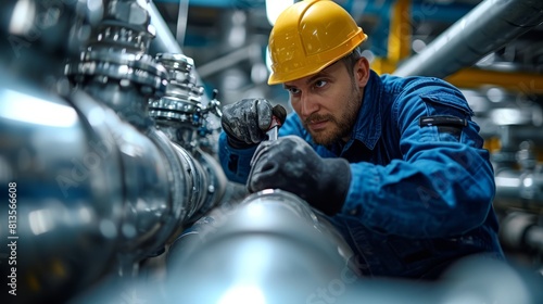 Strategic technician working on a critical leak repair in an industrial water pipeline.