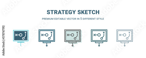 strategy sketch icon in 5 different style. Outline, filled, two color, thin strategy sketch icon isolated on white background. Editable vector can be used web and mobile