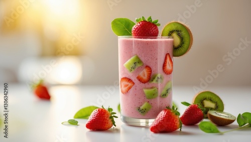 Strawberry and kiwi smoothie served on a light-colored table